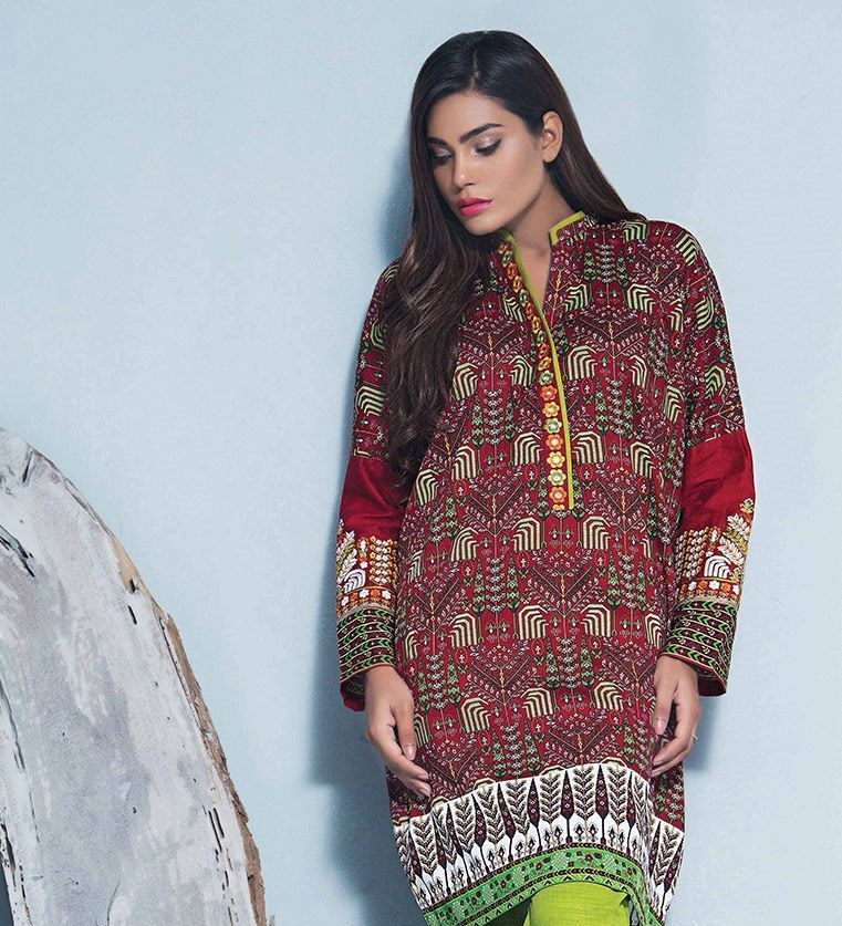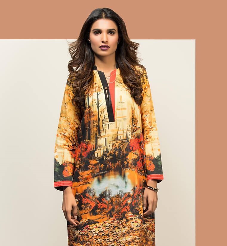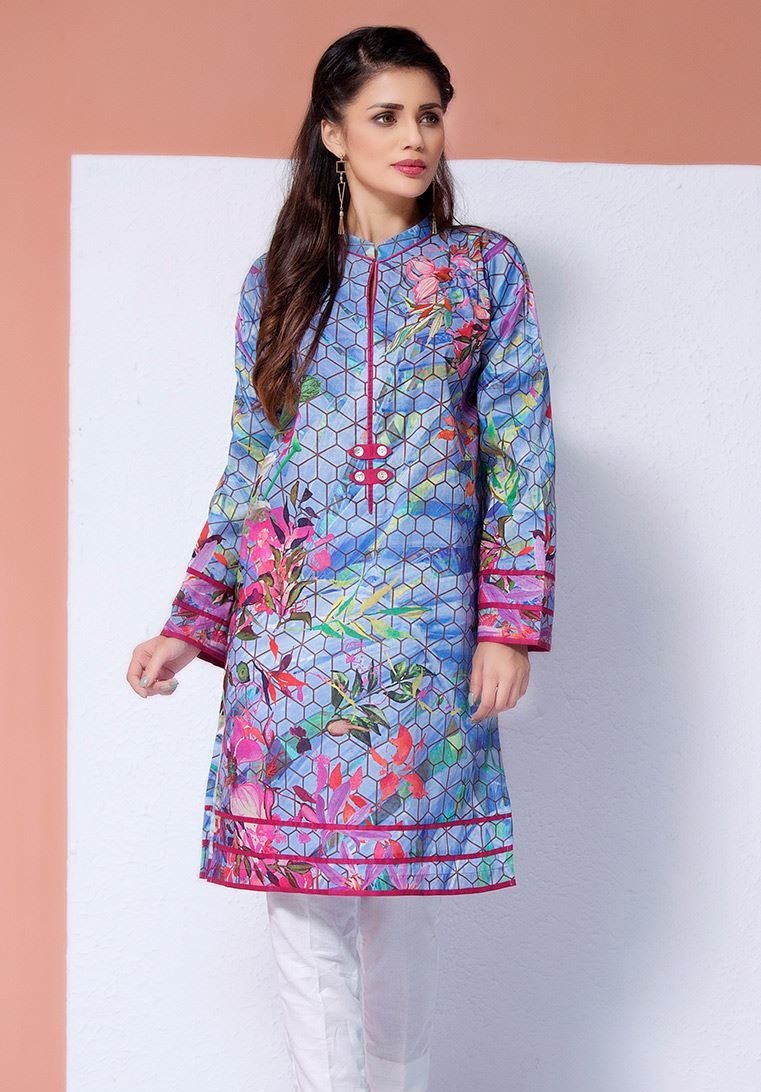Another classy article of the Orient Digital Printed Tunic Collection for Winters is this blue colored cambric kurti. Rock this winter with this stylish floral printed tunic worth 1,750 rupees. However, the Ready-made outfit would cost 2,150 rupees.