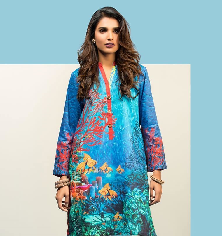 This blue colored seaway design winter tunic is a unique print introduced this season by Orient Textiles. Fashion forward ladies would love going for this chic winter kurti to wear a class this winters. It is available in an exciting price of rupees 1,950 as unstitched shirt while in 2,250 PKR as off-the-peg garment.