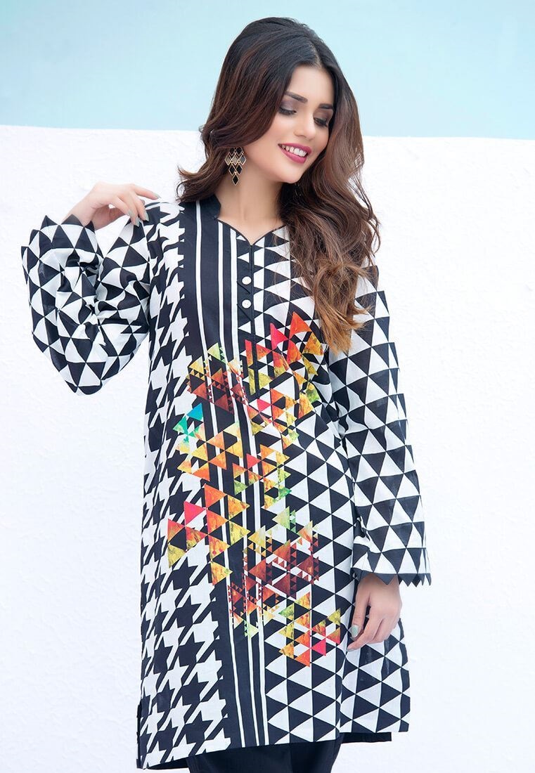 This black and white zebra style cambric tunic is one of the classiest designs of the series. We advise you to buy this stunning attire this fall winter and look adorable. Grab it now from the Orient official store in just 1900/- rupees. If you need it in unstitched format, pick it up in 2,300 rupees.
