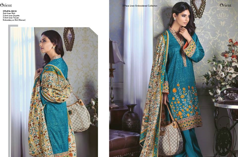 The Orient Textiles Winter Linen series is another worth watching assortment unveiling spectacular designs of three piece printed or plain linen and embroidered linen suits. These dresses have been complimented as 2.5 meter linen shirts, 2.5 meter linen dupatta and 2.5 meter linen trouser.