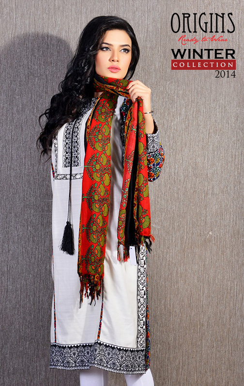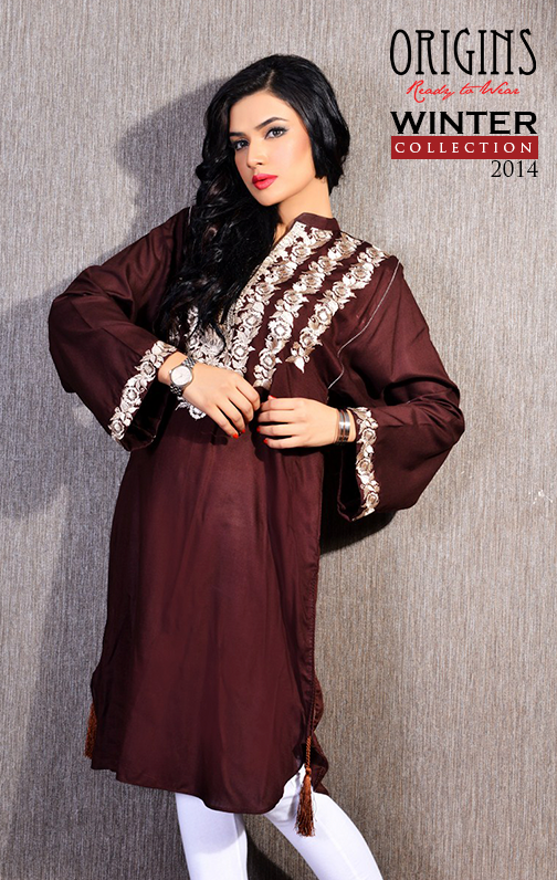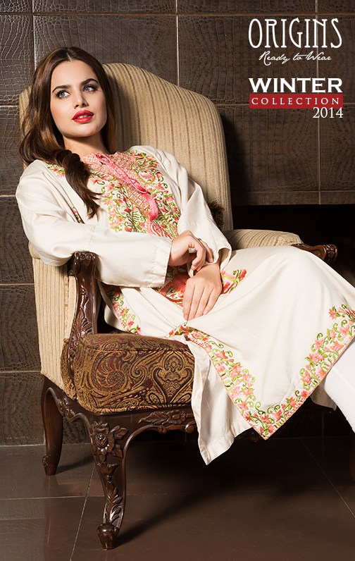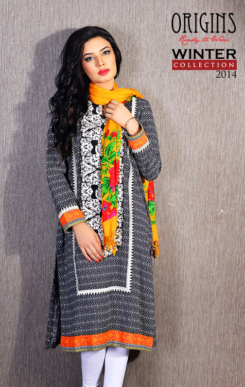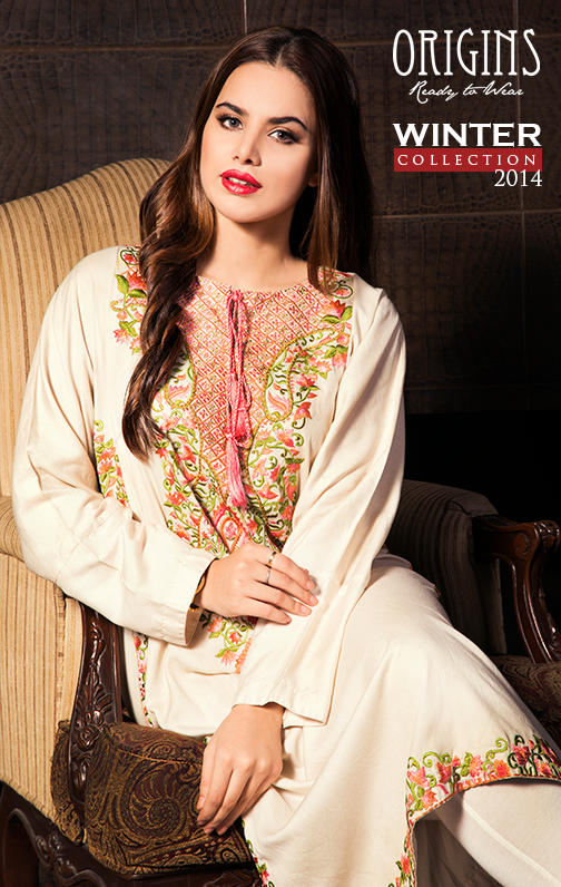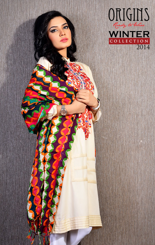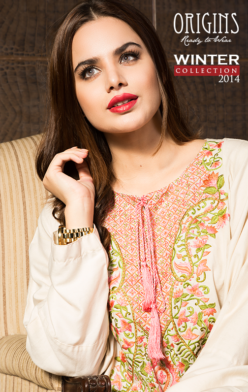 Origins Winter Fall 2014-2015 Collection has been finally released with its most inspiring and attractive designs and prints. These wonderful dresses have been stitched in best ever trendy styles along with pretty embellishments including embroideries and lace work. Beautiful mixing of eye catching hues and shades in pretty contrasting patterns is making these outfits extremely impressive and attractive. If you really wish to add a glamorous touch to your style this winter then you must go through this fantastic array of dresses. It will surely unlock some new ideas and designs for you. Here in the following photo section we have added all these new designs. You can have a look at these and purchase them online by visiting the company’s E store or by visiting it’s nearest outlet in your city. Enjoy the stunning designs and share your views with us in the comment box. Keep visiting Stylesglamour Winter fashion gallery for more.