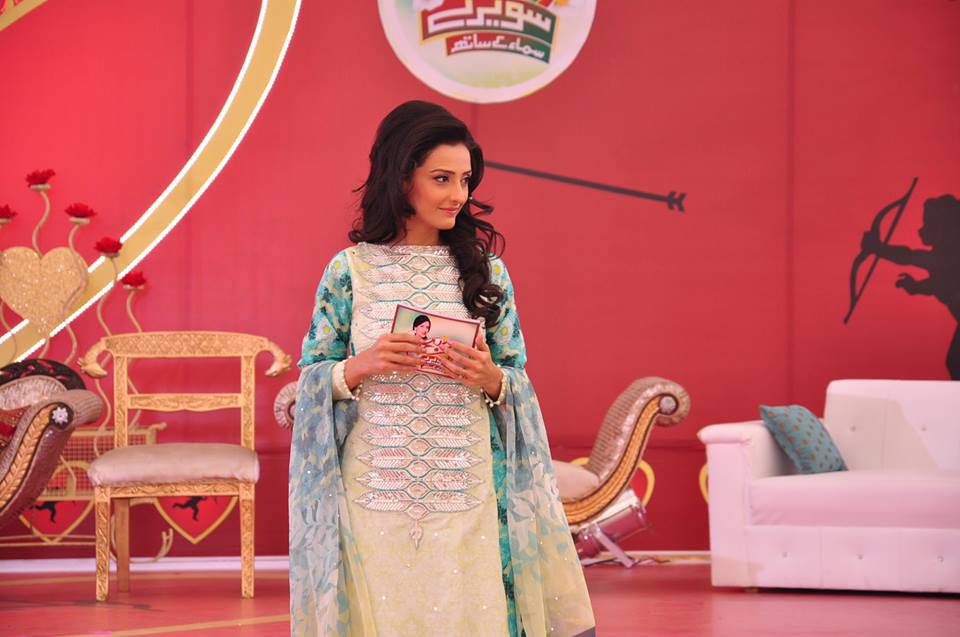 Saba Qamar in Trendy English Green ShirtPakistani-Celebrity-Dresses-Collection-2015-2016 (10)