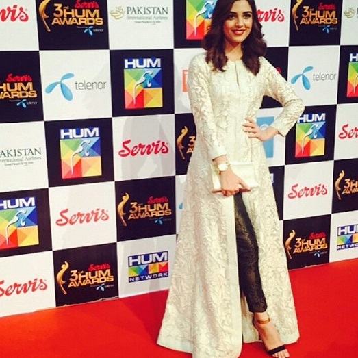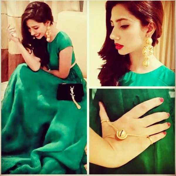 Mahira Khan in green skirt on Hum Awards