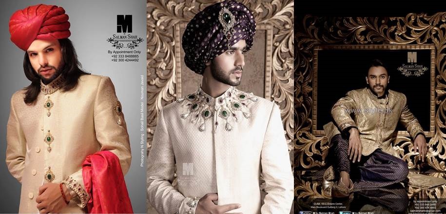 Dulha dresses generally worn in Pakistan mostly belong to the same category of sherwani suits, salwar suits, lungi, dhoti or simple shalwar kameez with waistcoat. No matter which wedding function it is, sherwani is one of the most preferred wedding wear for the boys. One of the many reasons behind its selection is that it is traditional formal dress having its origin back in the ancient times of sub-continent. Styles Glamour is pleased to bring the best and trendy stuff for you, appropriate for any occasion whether it is Eid, formal get-togathers or weddings.