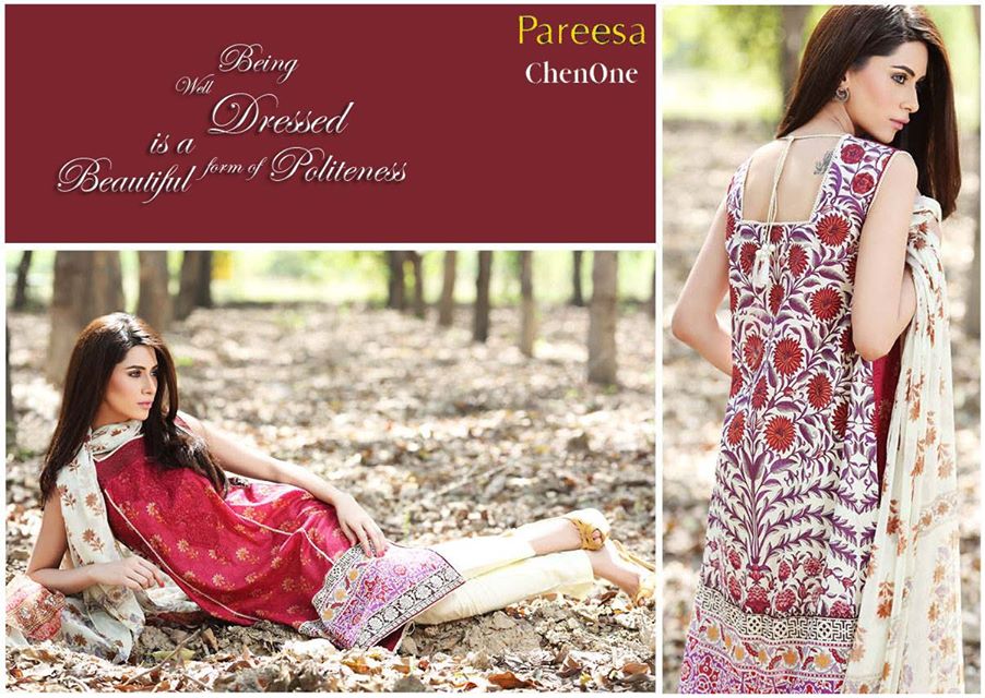 Hello Ladies! After the successful launch of Pareesa Spring/Summer Lawn collection Volume One, the Summer Collection Volume 2 has finally being unveiled by ChebOne and is hitting the market. We have covered up the collection here with all it’s charming and adorable prints. Pareesa is basically a fashion line of ChenOne, which itself is a fashion hub owned by Chenab Group. It is a chain of fashion stores located in almost all major cities of Pakistan and Middle East serving with excellence since 1997. It deals in clothing for both men and women including kids wear, stitched as well as unstitched dresses, other accessories, footwear, furniture, decoration pieces and many more. Like other clothing brands chenOne seems to very conscious towards expanding their business in clothing as it is becoming an increasing trend. That’s why they created a separate collection line named “Pareesa” for stitched and unstitched dresses specifically for women.