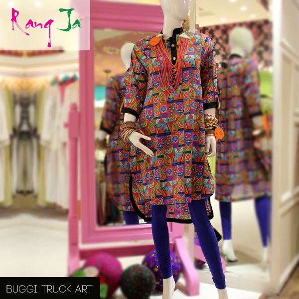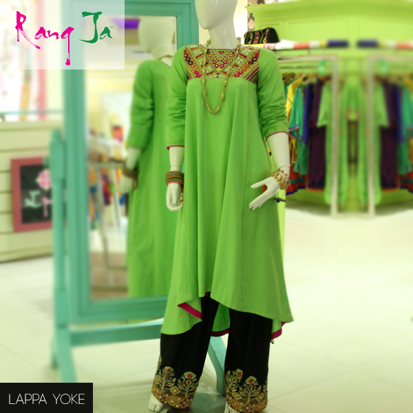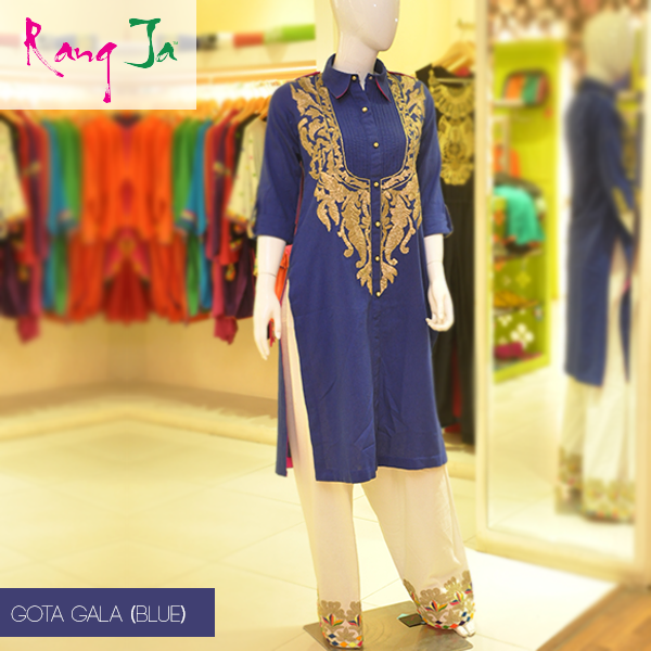 Hello Ladies! You must be searching out some new summer dresses for the upcoming season. If so, we have brought you a fine collection of lovely dresses by Rang Ja. It is a brand engaged with production of quality fabrics in trendy and up to date styles for young ladies and women. This fashion hub is basically a fresh addition to the clothing industry of Pakistan, but is acting as a best competitor against Pakistan’s top most brand and designers. It introduces wonderful seasonal collections every year containing lawn and cotton prints. Besides formal wears it comes up with adorable casual wear dresses yearly. The best thing about a brand is not only the versatility but quality and range. Further, a customer may be willing to pay even a handsome amount when the factor of quality is concerned. So in order to maintain quality best possible stuff is used by quality brands and top most designers, and so does “Rang Ja”. It is a best choice where you may find quality within a reasonable range. Like all other brands it has unveiled it’s Summer 2014 collections. One of them has been added below.