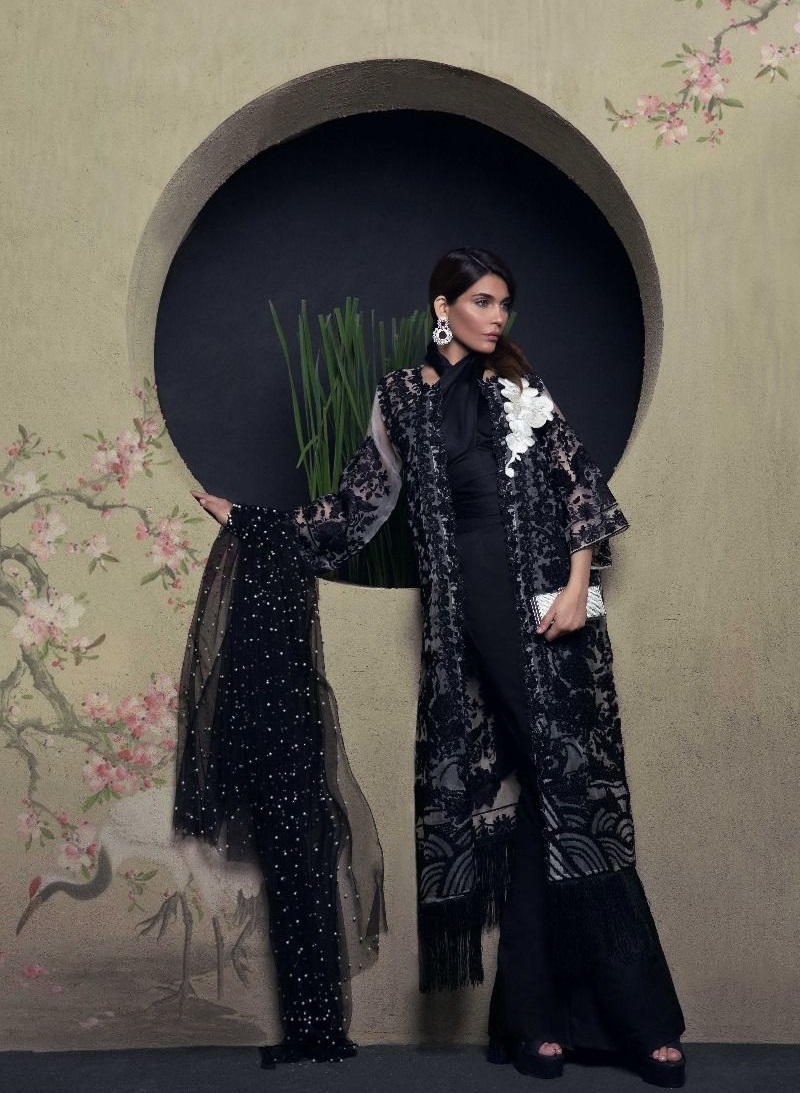 Sana Safinaz Black Organza Resham Embroidered Eid Outfit: