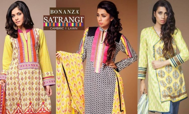 Satrangi New Mid-Summer Autumn Collection by Bonanza Garments is an assortment worth watching. The collection line covers a pretty range of cambric and lawn suits for women. These three piece suits in best ever patterns and prints in eye catching colors are now available within a very reasonable range after the sale upto 35% off. Starting from 980 Rs/. to 1780 Rs/. the collection is offering a fantastic opportunity to refill your mid-summer wardrobe. Be the first one to grab these wonderful dresses before the sale ends. All articles have been displayed into the following photo session. Have a look and pick up your favourite ones. You may get these from the brand’s nearest outlet in your city. Stay connected with Stylesglamour for more.