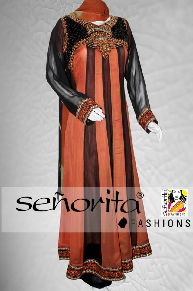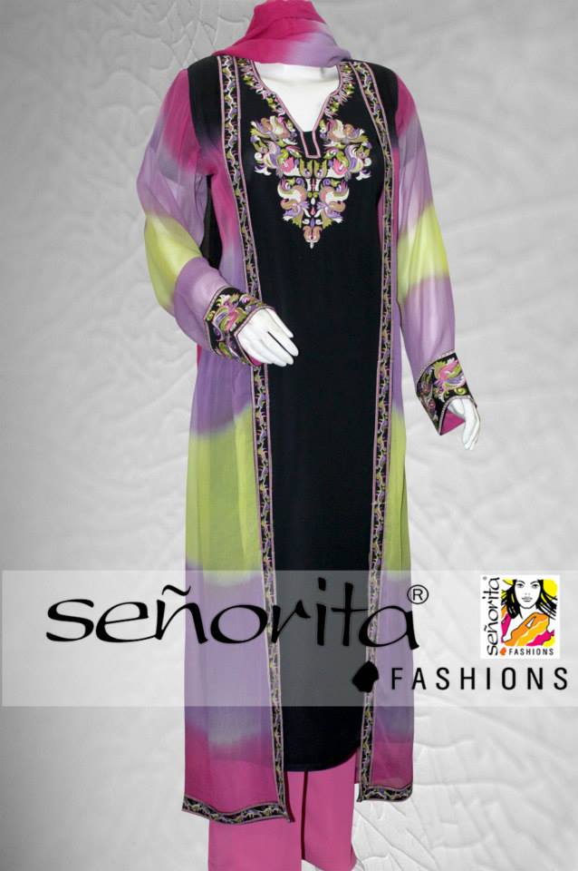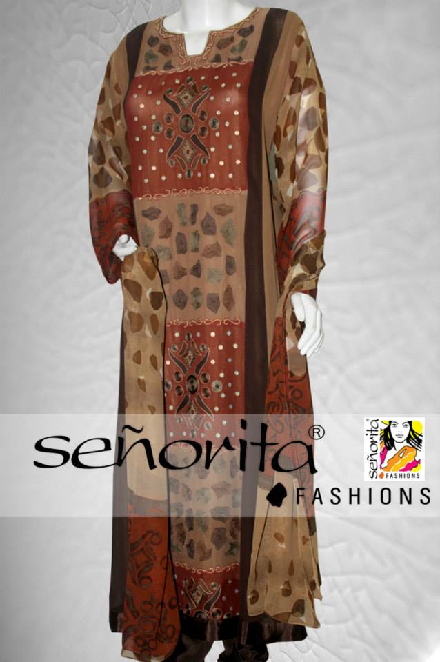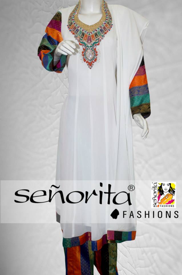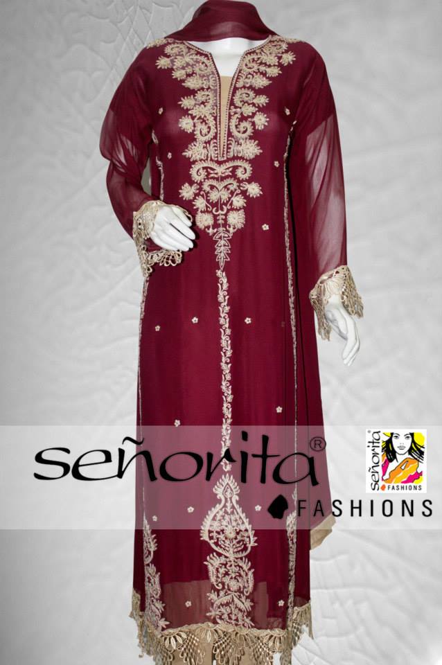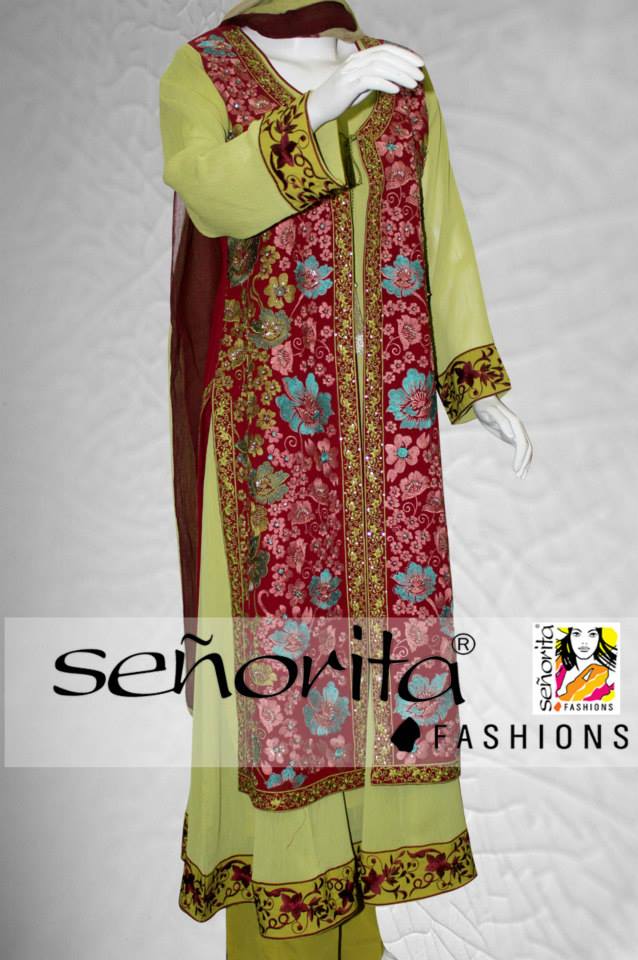 Senorita Semi-formal and Party Wear Collection launched this year has been enriched with very beautiful and pretty designs of functional dresses for girls. These functional ‘must haves’ include a huge variety of formal shalwar kameez, kurtas, open shirts with half cuts and frocks embellished with very fascinating patterns of embroidery. By the use of sleek embroidered patterns on chiffon stuff, these dresses have been designed perfectly to be worn in formal get-togethers, parties and functions in any season round the year.