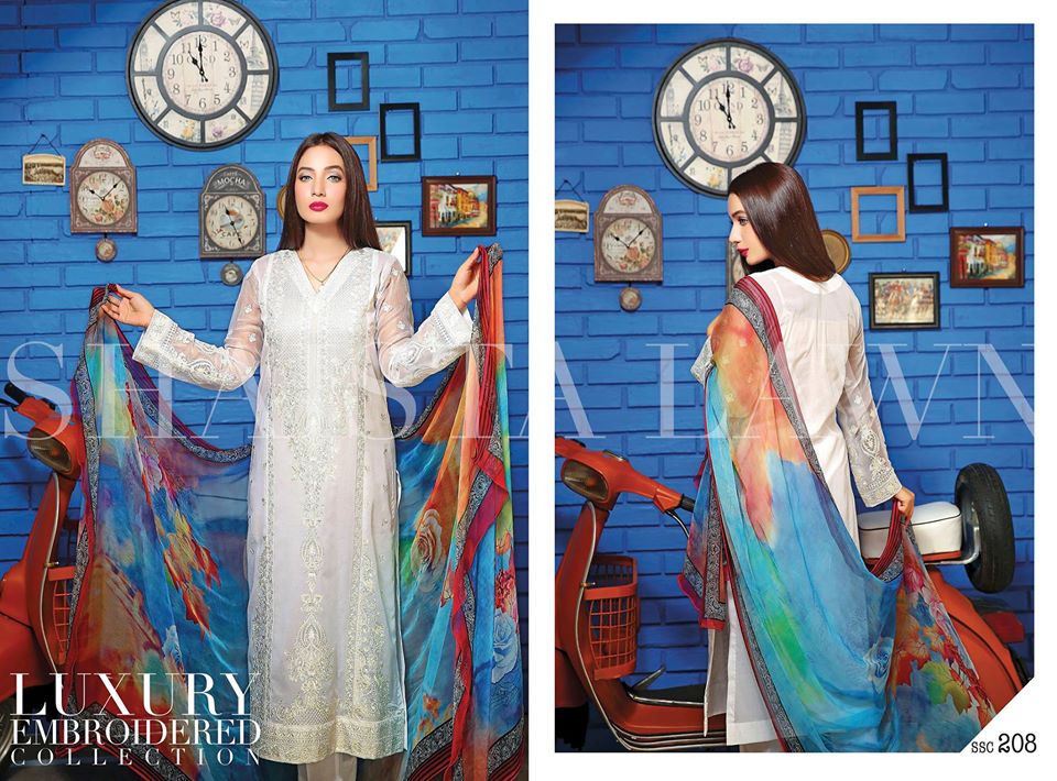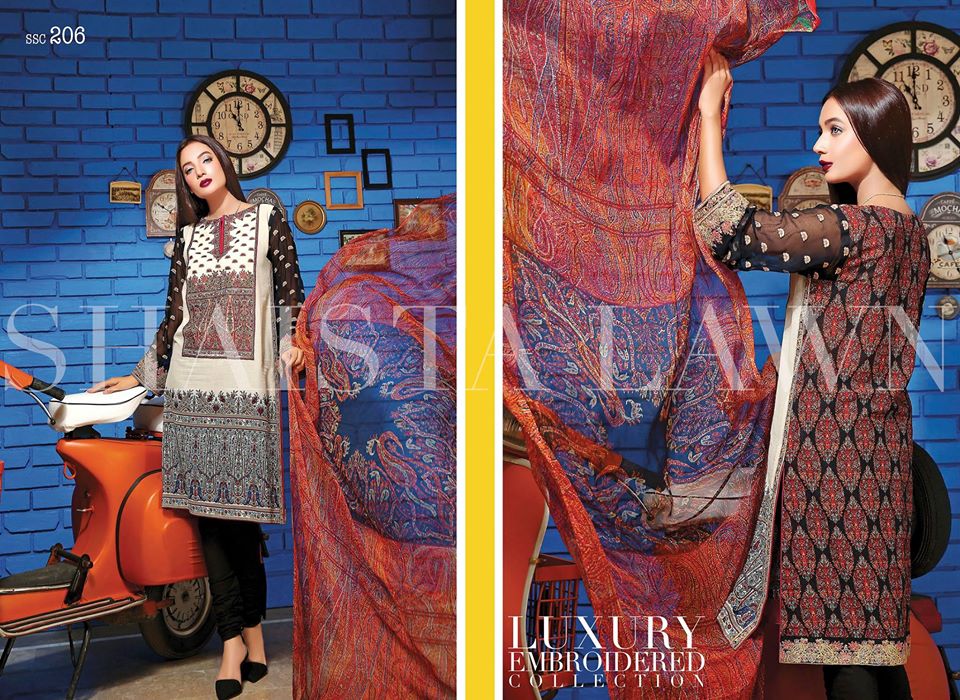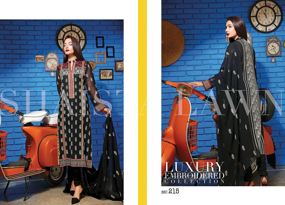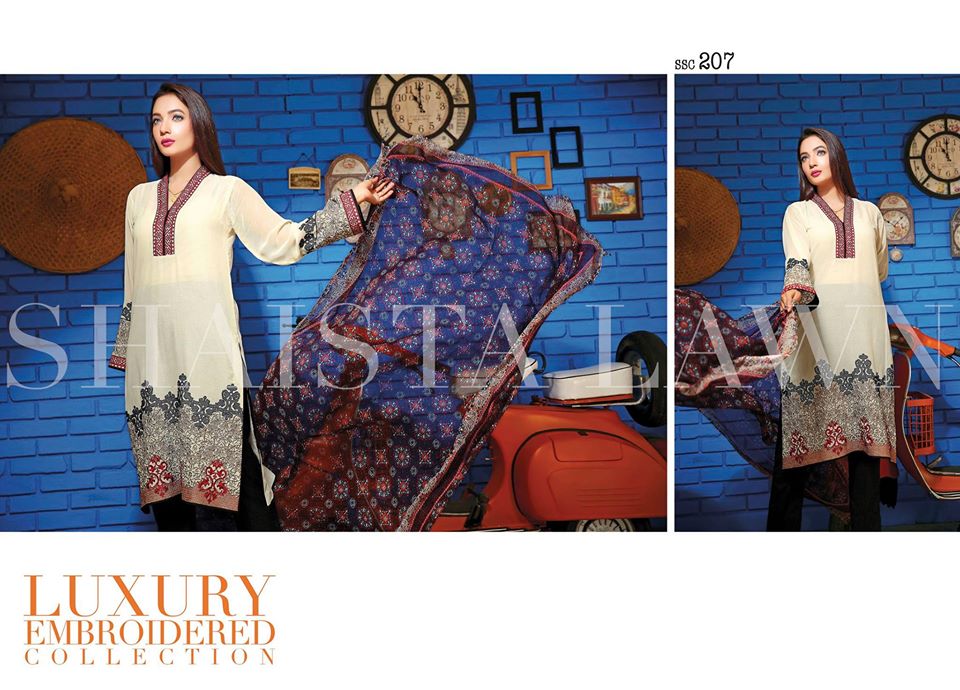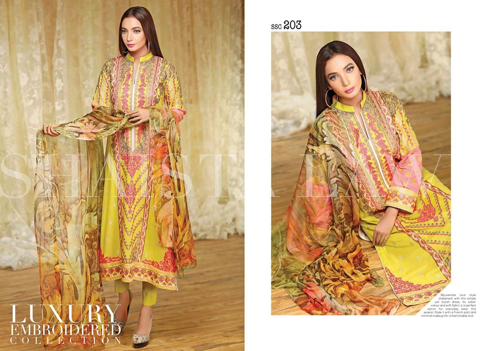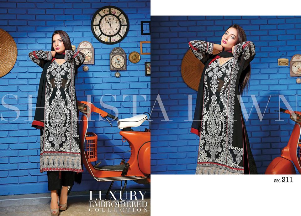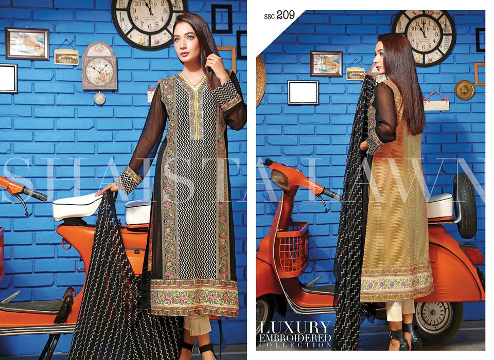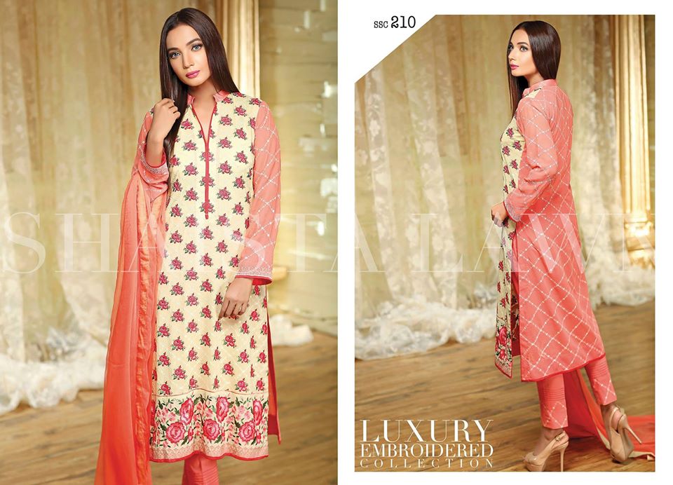 So the festival is just a week ahead and we have been unwrapping all festive collections here for you people to make the task of festive shopping a bit easier and simple for you. You must have been preparing for the festival by the start of Ramadan but if you still didn’t find anything interesting and attractive then nothing to worry about, Stylesglamour is here once again to guide you in the best possible way and to help you locate the latest collections of trendy dresses and accessories. We hope that the collections presented earlier must not have disappointed you but if they really did, then the upcoming assortments will surely help you out. Going through these assemblages will be an easy way out and a perfect Eid dress can be found with a smart choice from any of these collections. Any designs of embroidered lawn, silk and chiffon suits can be found here with no hesitation and all of these are adorned with latest trendy styles common these days round the country. Among the best ever designer wear and branded collections, we have selected the Shaista Cloth Embroidered Eid Collection to be dispatched in this article for you.