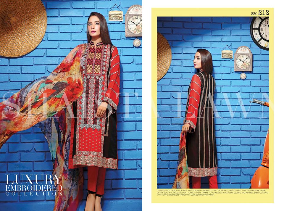 Shaista Cloth Embroidered Eid Collection 2015-2016 has now been released nationwide with its glamourous festive prints in bright and vibrant colors which are all eye catching and attention grabbing. You won’t be able to keep your eyes from the wonderful designs and prints of this adorable collection that has stunned the viewers by its charisma and charm. The beautiful three piece embroidered suits of this collection can make you feel stylish and pretty by wearing them on this Eid. So move ahead and pick up the classy embroidered classics of this assemblage.