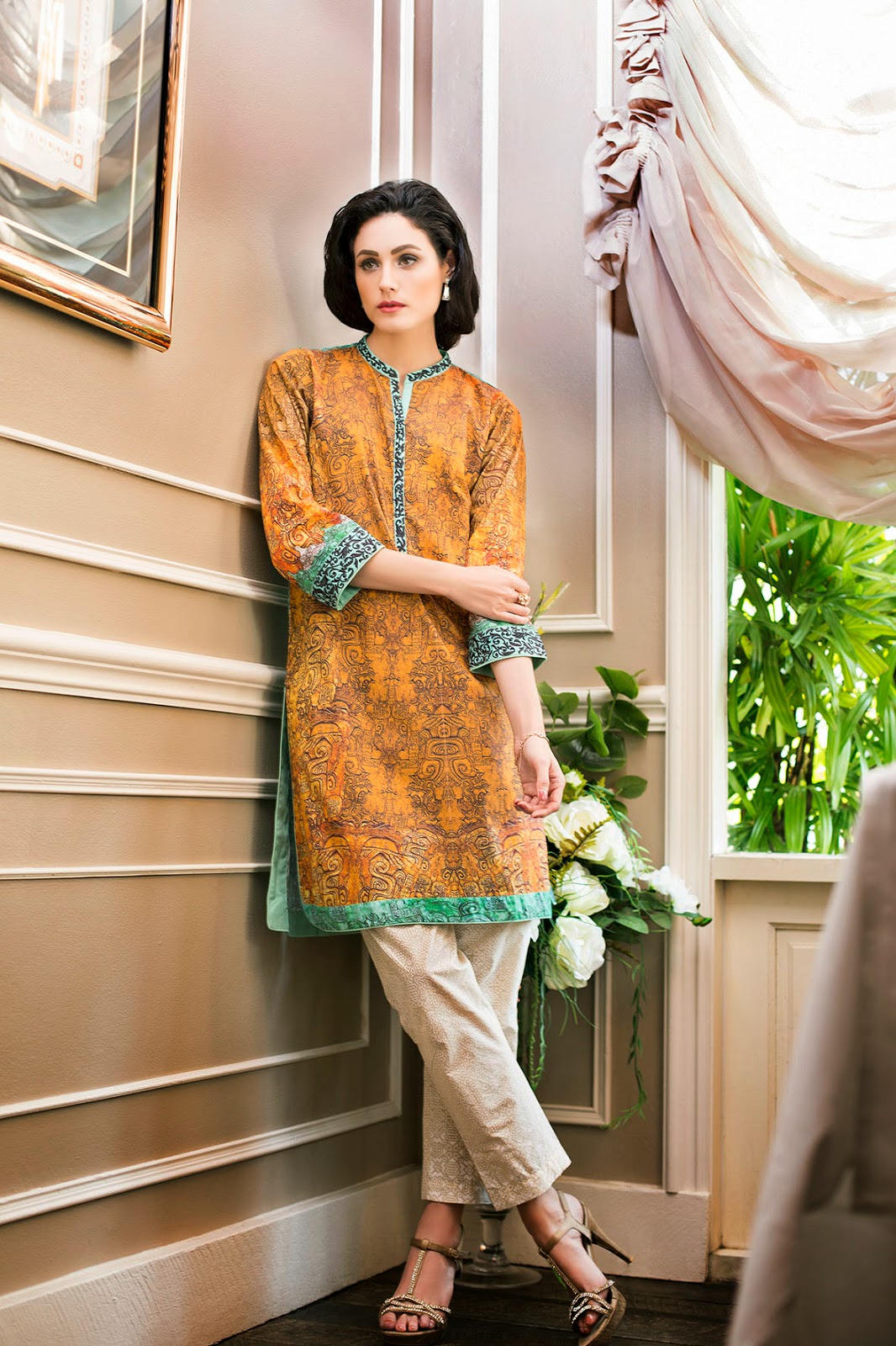 Cigarette pants give a very classy and stylish look to the ladies wearing them as they behold a sort of magic and glamour in them. Initially it was thought that cigarette pants with short shirts will give a wired look and most of the ladies were seen opposing the new style but later when the style was practiced, it looked great and ladies went well with the new trend. Cigarette pants also look great with open shirts or short gown style shirts which are also in a common trend this year. Styles Glamour is pleased to unbind all the classy summer and festive collections of all brands and designers at this platform to help you wear a perfect style this year. Now we feel proud to guide you further about how to get your dresses stitched according to latest fashion trends of this year.