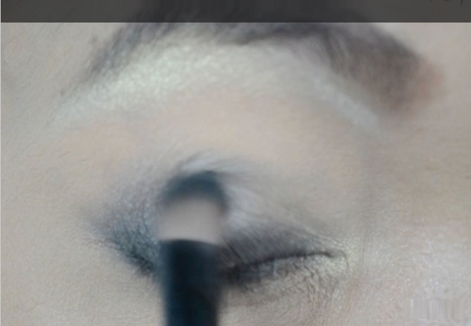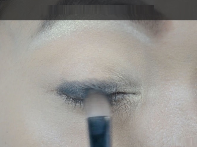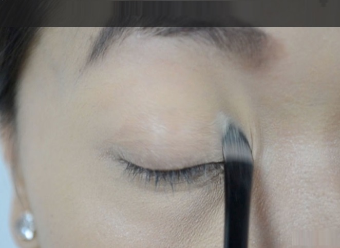• Take the lightest shade of the shadow box on a brush and apply smoothly on the corner of eyes (specifically the inner one) and just below the eye brows.