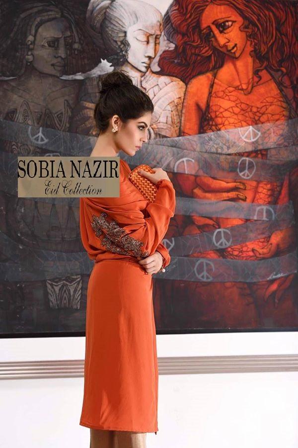 Sobia Nazir New Festive Eid Collection 2015-2016 is hitting stores nationwide. The collection is being supplemented with astonishing designs full of festivity and glamour which can make your Eid more colorful and memorable. Trendy styles of beautiful chic outfits in vibrant colors have made all these attires perfect to be worn on the upcoming festival. This fantabulous collection is offering you an opportunity to look fabulous this Eid by wearing elegant silhouettes. So step ahead and fill up your closets with magical prints to make everyone surprised by your wearable and your spleneded looks.