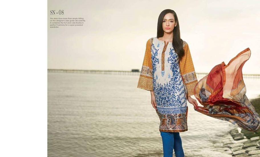No matter how busy you are in your daily routines you can still manage time for shopping. It’s all about priorities that you set by yourself and the priority of dressing should be top most as dressing is one of the many factors that contribute in delivering a perfect look and impression of yours to others. Whoever looks at you first of all focuses on what type dress you wear and how you carry it. When it comes to ladies, the only thing that most of them generally consider while judging the personality of a person is his dressing and style. So one should not compromise on wearing new and trendy styles of dresses as it would help them groom and deliver a trendy look to others. Hundreds and thousands of lawn prints are now-a-days shinning in the market to grab one’s attention and surprise everyone by their beauty and grace. Brands and designer have dedicated themselves in designing such pretty and worth appreciating lawn designs this year that their efforts must be appreciated at first place. The unmatchable designs and lawn prints of the summer 2015 are all unique and magical in their own way. We will cover one of the very beautiful collections in this article. It has been introduced recently by Sobia Nazir.
