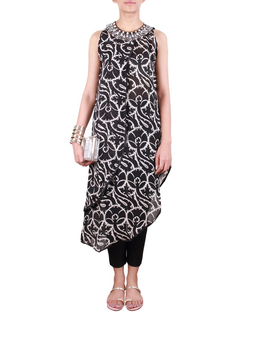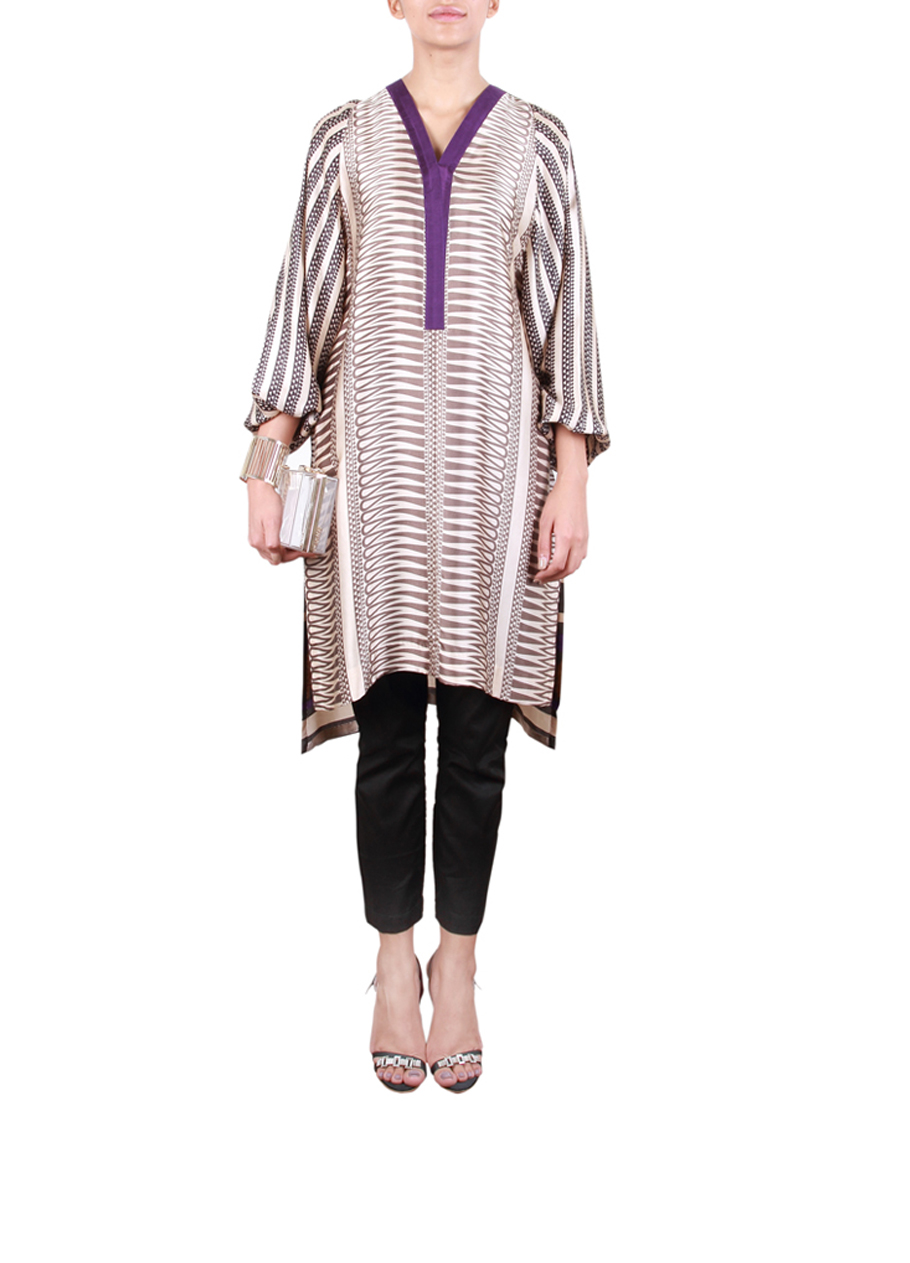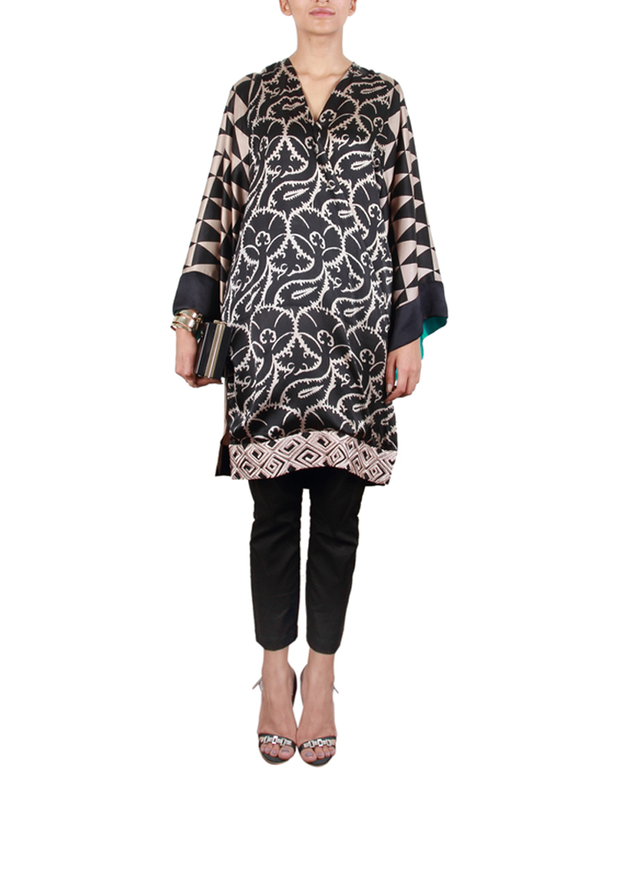 As the fashion trends keep on changing, new and new styles of dresses are introduced by designers. Casual wears now-a-days include kurtas, shirts, tops and tunics. Tunic is a long loose sleeveless garment reaching to knees generally worn along with pants and churidars. However with new and new trends certain modifications in styles have been introduced. Now the length may vary from knees to thighs, similarly sleeves can be half or three quarters. Today’s post will unveil a brand new assortment of stylish tunics or kurtis by Sana Safinaz.