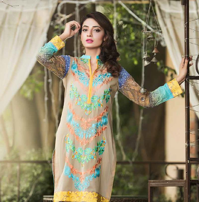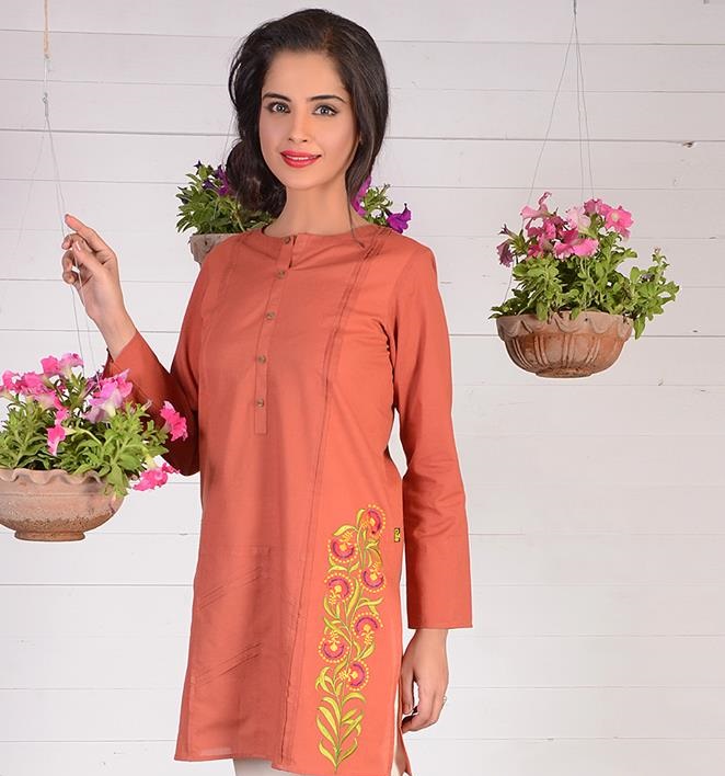 Kurtis or kurtas have always been in trend no matter which era it is, whether of long shirts or short shirts. Tunics give a very elegant and graceful look to girls especially when paired up with pants or capris. Most of the brands this year have brought tunics in their RTW collections. We have shared a couple of good designs of full three piece printed and embroidered unstitched and stitched suits in the previous section and now are going to unwrap some fabulous designs and styles of designer and branded tunics for women.