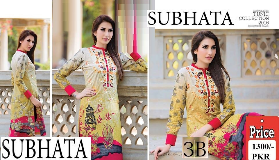Subhata Tunic Series has been enriched with classy kurta/kurti or tunic designs in delightful colors, all worth 1300/. PKR. Have a look at the signature articles in this section.