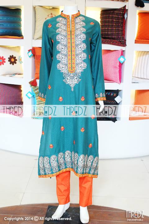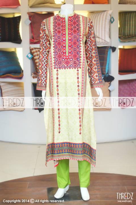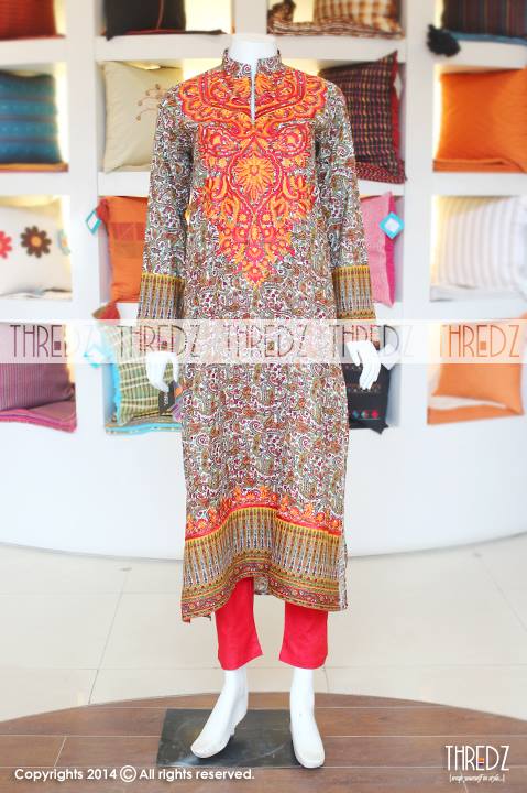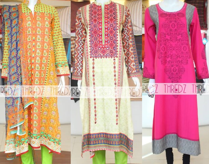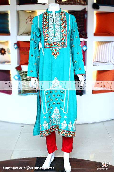 THREDZ New Fall/Winter 2015-2016 Collection has been finally hitting stores. This fantastic array of dresses is wonderful enough to give a confidence to wear new and trendy styles to the modern women. This collection line has been featured with best ever ready-made shirts stitched in trendy styles and full unstitched suits for women. These dresses are embellished with most beautiful floral and block prints of basic lawn kurtas along with pretty embroidered patterns which are making them look more appealing and attractive. Posted bellow is a photo gallery where all these ready-to-wear and unstitched articles have been added. You can have a look at these and select the best ones among them. Enjoy the cool designs and leave your feedback in the comment section below. Stay connected with Stylesglamour for more about fashion updates and latest branded and designer winter collections.