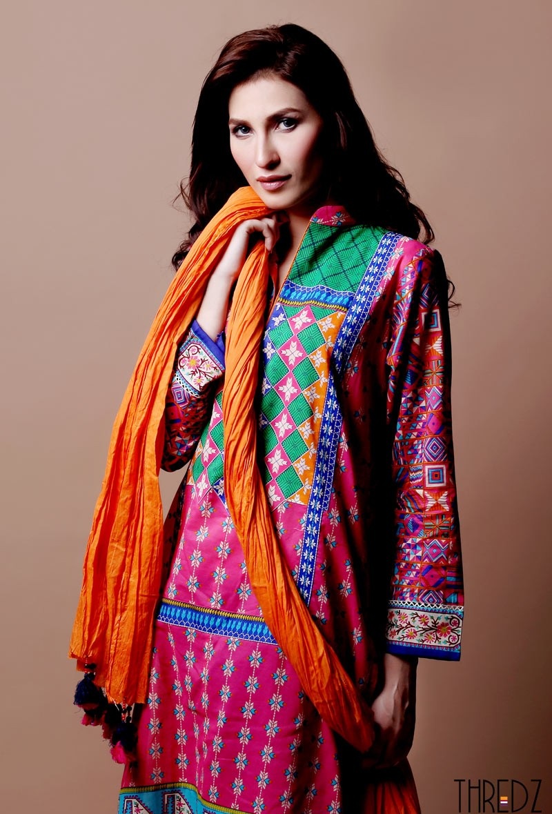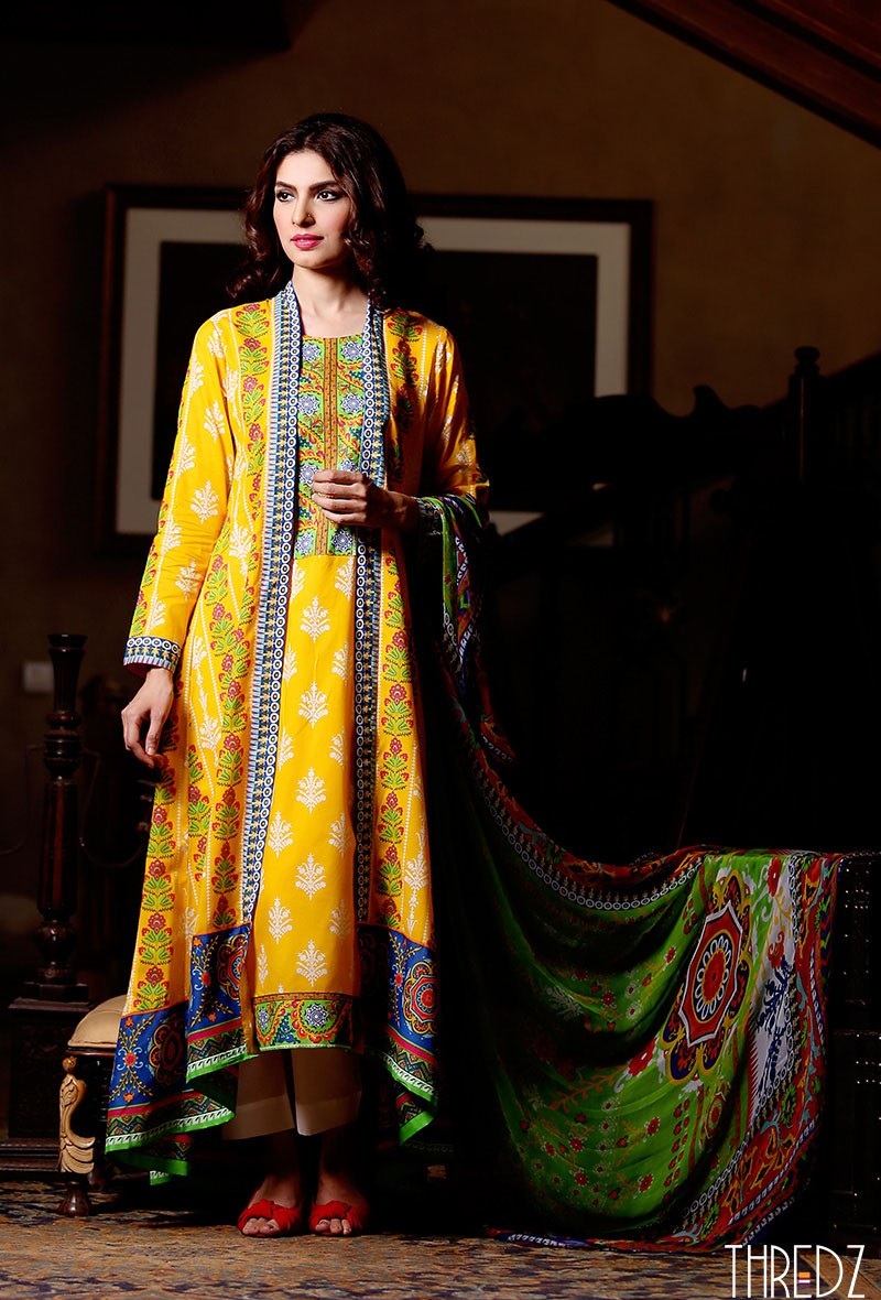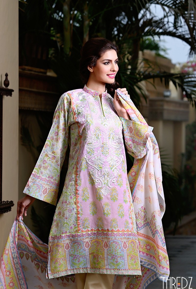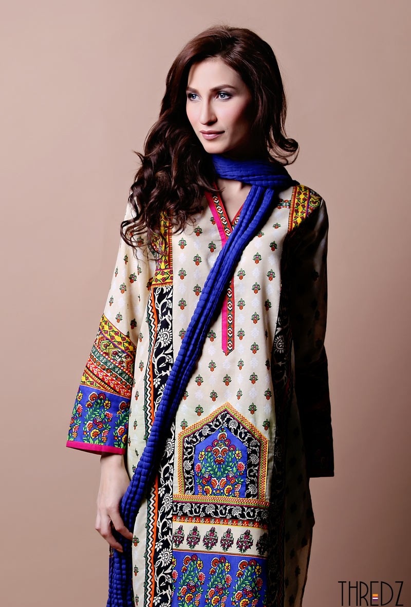 THREDZ new summer lawn collection 2015-2016 has recently been launched and is available for sale online and in outlets. It is featuring pretty floral and digital prints of lawn suits that are most appropriate to be worn in summers. The trendy and new styles of these outfits by Thredz are making them perfect to fit into the newest fashion and clothing trends to be followed in the upcoming years. The trends have completely switched from long shirts to short and medium length shirt and the styles of this pretty assortment are going absolutely well with the flow of fashion these days. Fill your wardrobe with these breathtaking designs by Thredz and surprise your fellows and friends.