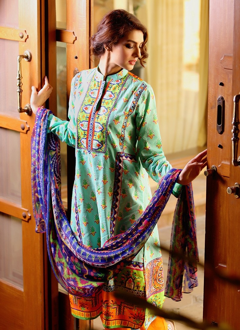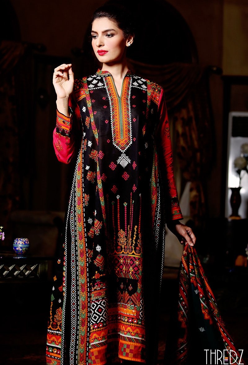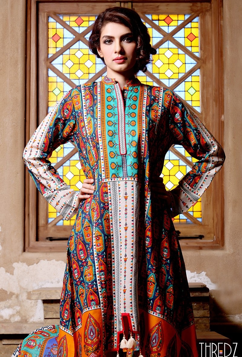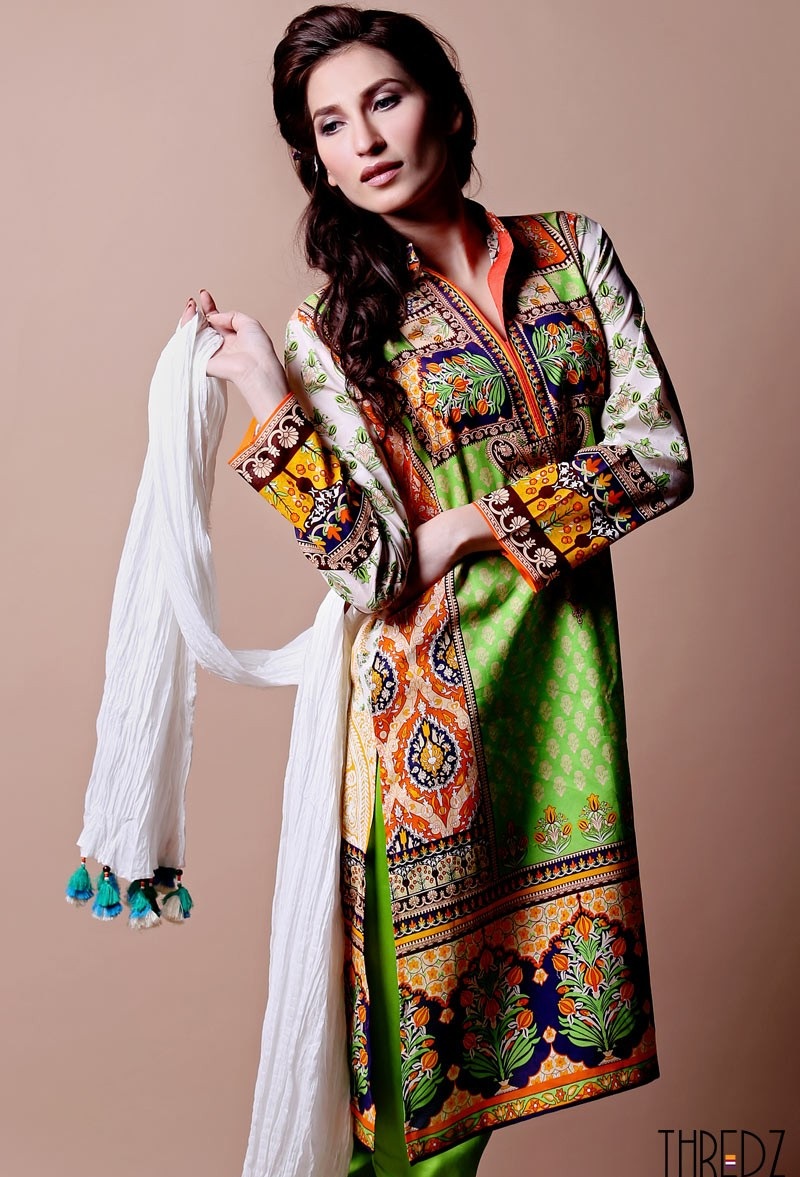 THREDZ new summer lawn collection 2015-2016 has recently been launched and is available for sale online and in outlets. It is featuring pretty floral and digital prints of lawn suits that are most appropriate to be worn in summers. The trendy and new styles of these outfits by Thredz are making them perfect to fit into the newest fashion and clothing trends to be followed in the upcoming years. The trends have completely switched from long shirts to short and medium length shirt and the styles of this pretty assortment are going absolutely well with the flow of fashion these days. Fill your wardrobe with these breathtaking designs by Thredz and surprise your fellows and friends.