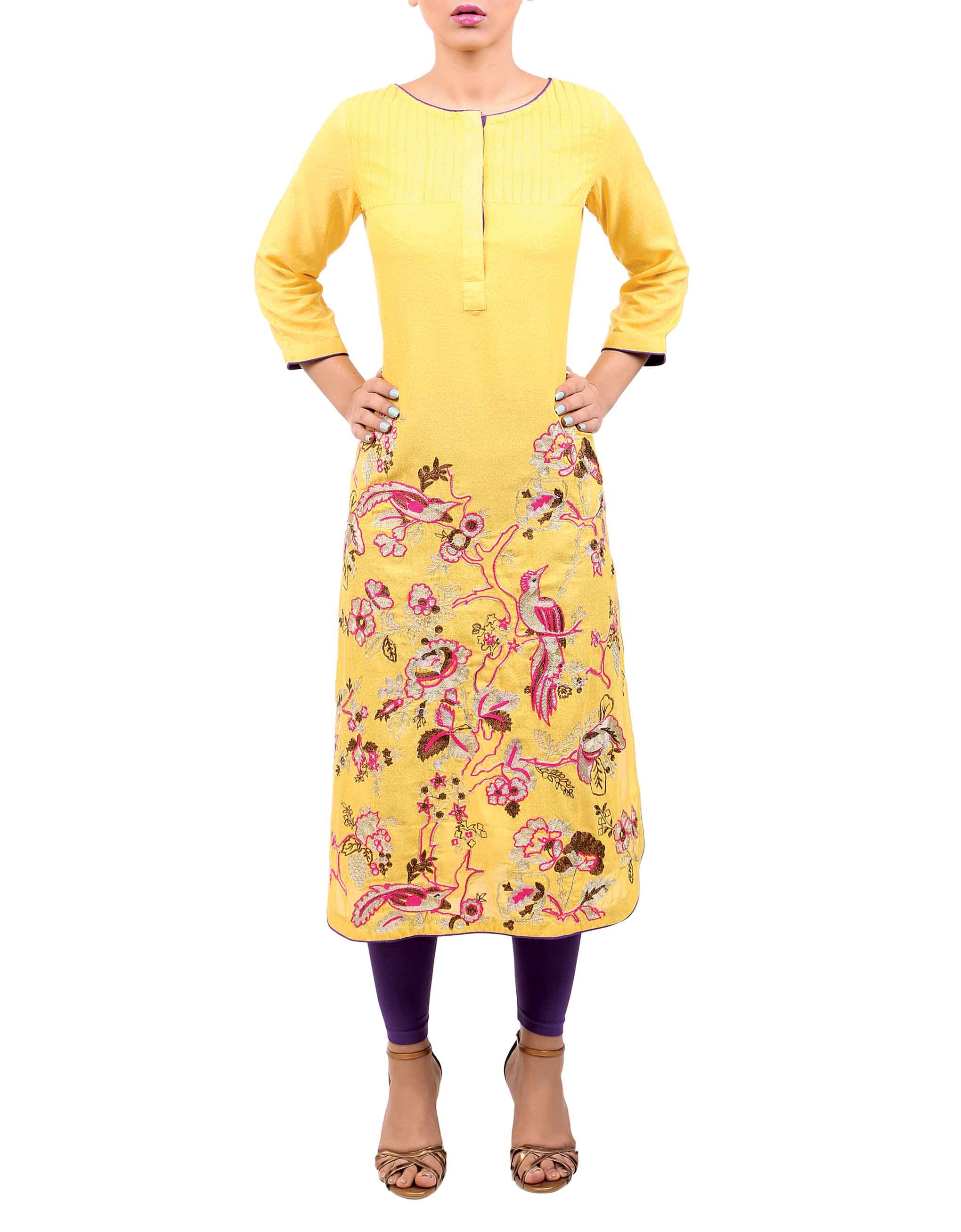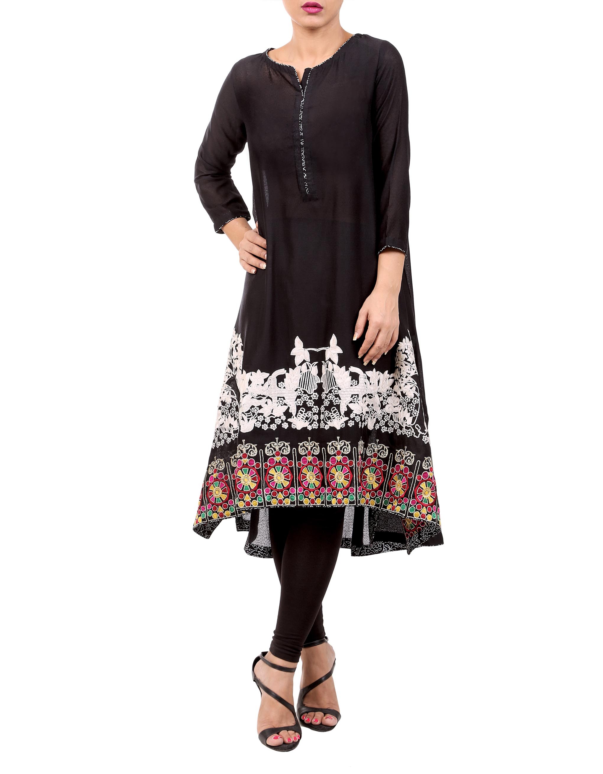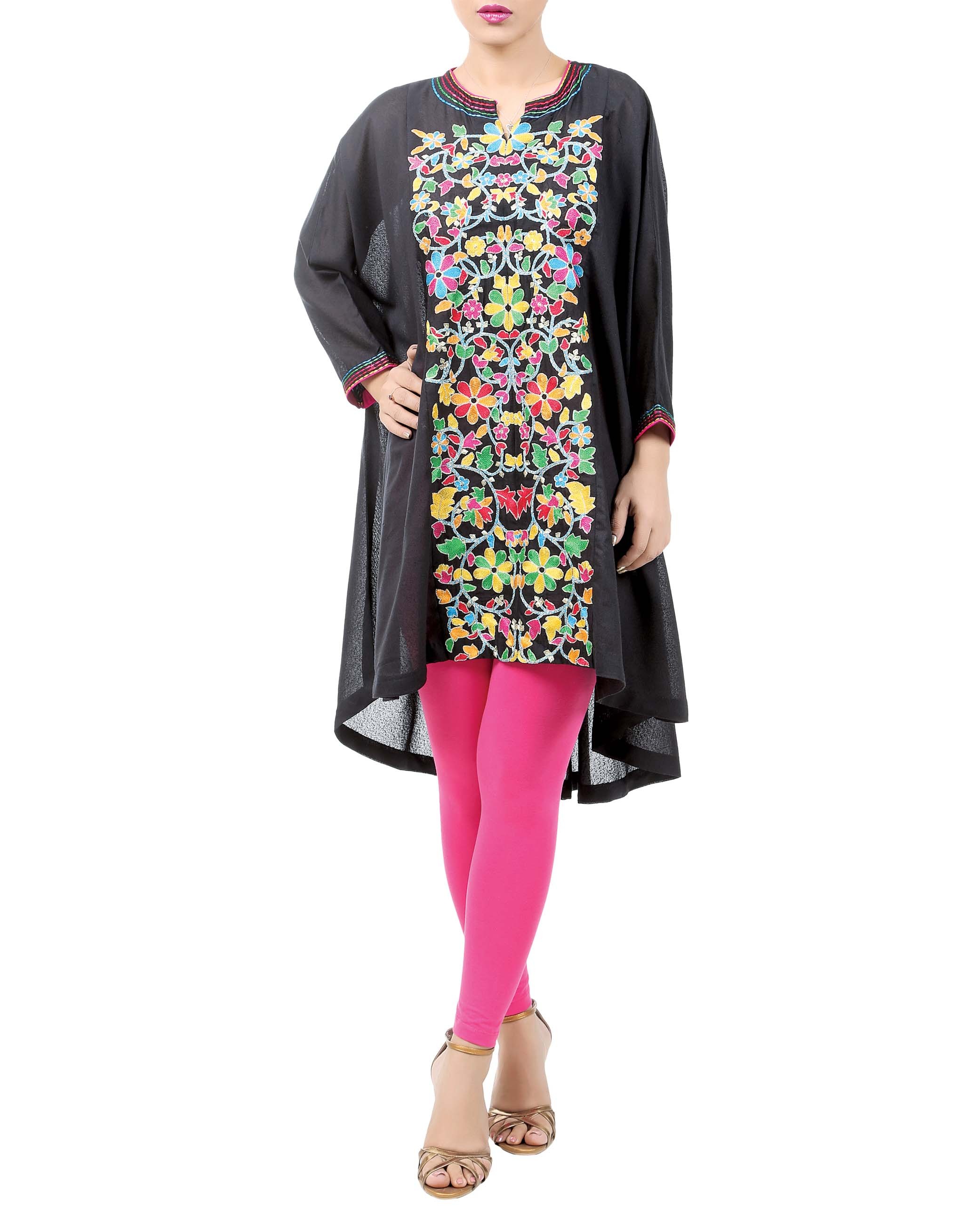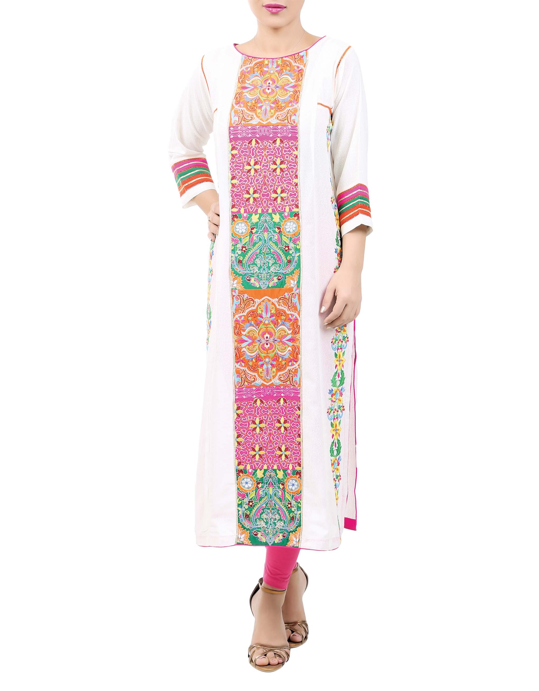 Rang Ja Eid Collection 2014 is a must-have festival collection offering an opportunity to wear style, trend and glamour this Eid. It has brought upon a pretty range of ready to wear stylish outfits for women stitched in spectacular and trendy designs like tops, kurtas, short kutis, long shirts along with bottoms like churidars and specially designed salwars in bright and funky colors with thread and tilla work on lower borders. These salwars can be paired up with any of these funky shirts to enhance their beauty and elegance. Let’s have a closer look at each of these dresses in the following photo gallery, containing all of them. Do not forget to share your views about this collection in the comment section below. Stay tuned for more updates and latest collections. Have a cheerful Festival.