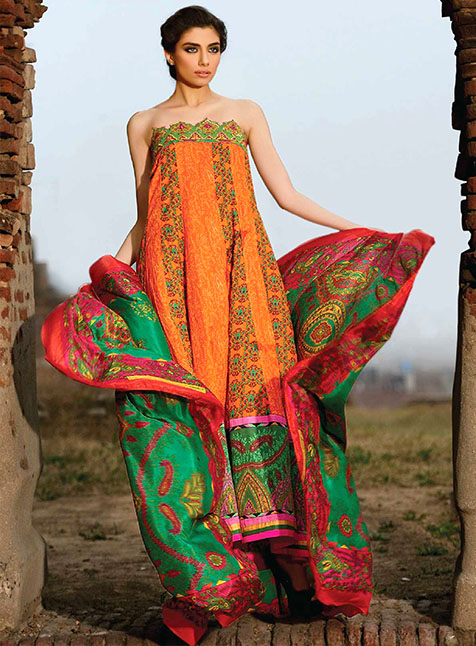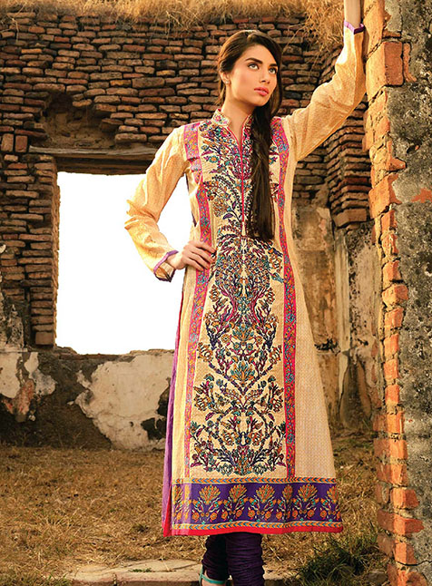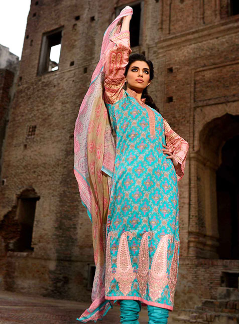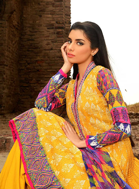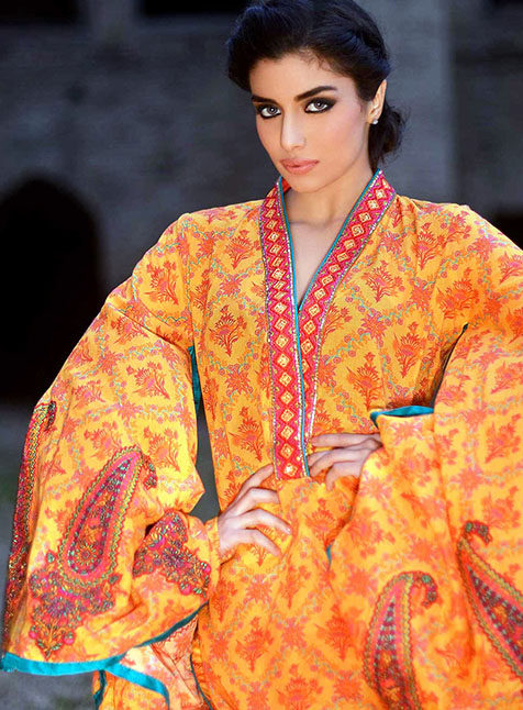 Umar Sayeed is a well known name in the Pakistani Fashion Industry. He always comes up with magical ideas. This year like always he has introduced charming designs with stunning eye catching colors. The glamorous prints are grabbing everybody’s attention. If you have already been wearing his Lawn collections, you would have a very clear idea about the uniqueness and versatility. If you are searching for a bunch of new arrivals of the year 2014 specifically for the lawn prints, we would recommend you to check out the new collection by this outclass designer in the Alkaram’s library. Alkaram has also been a very famous clothing brand that introduces quality dresses every year. Both these are tough competitors of the noted brands and designers of the fashion industry, continuously proceeding in the race of style and glamour.