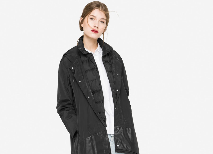 This parka is provided with the detachable waistcoat, which gives you the option to experience both the full length jacket to wear outside and a waistcoat in graphite black.