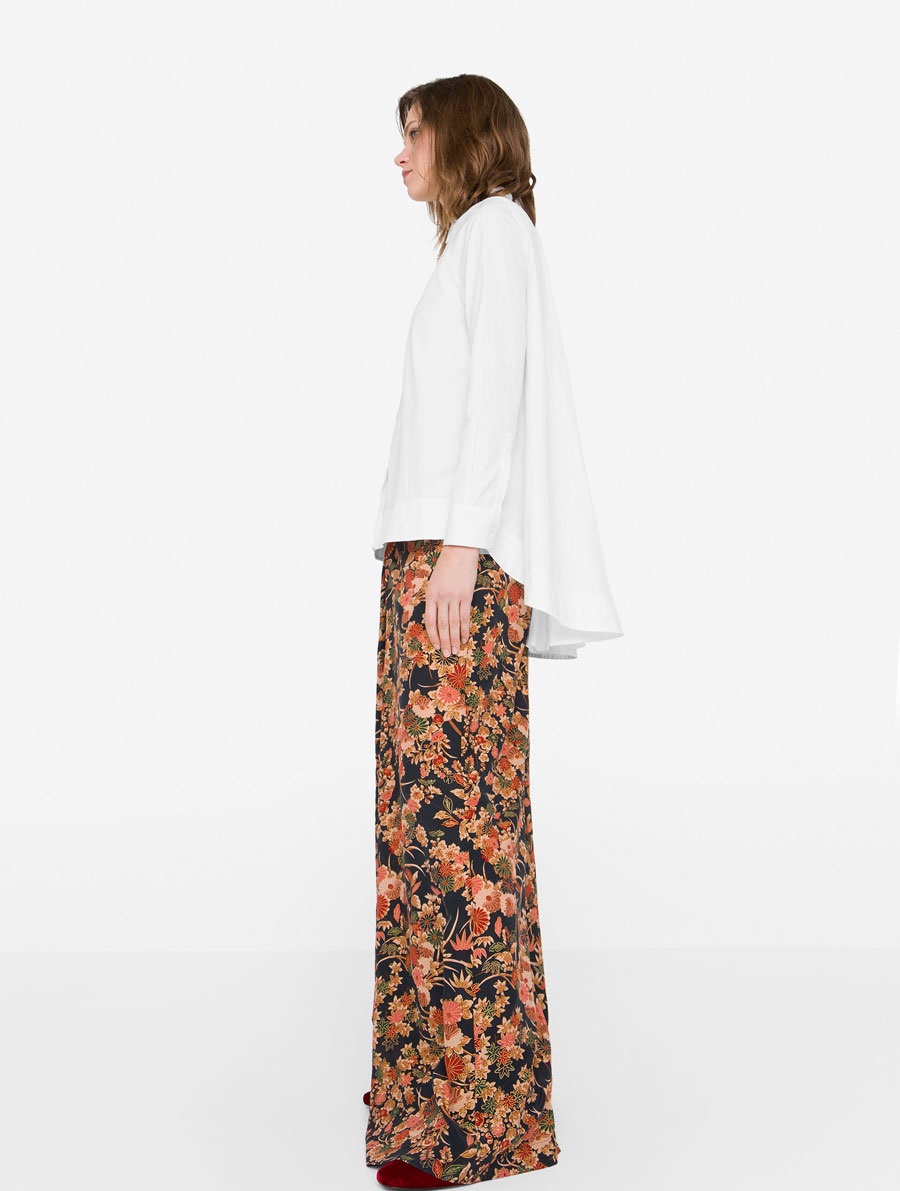 It is one of the master piece front the silk printed series of Uterque. The print is apparently available in variety of different designs, the most loved of all is this kimono shirt, wearable with types of bottoms.