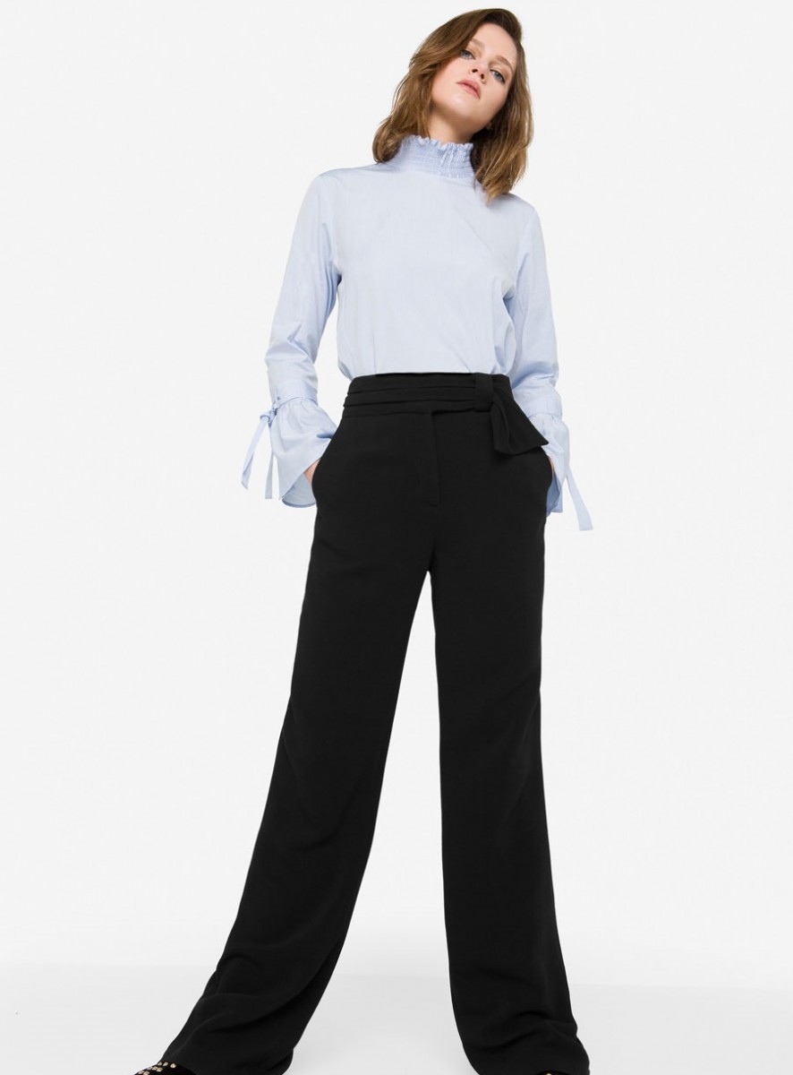 15. STRAIGHT CUT TROUSERS WITH BOW DETAIL: