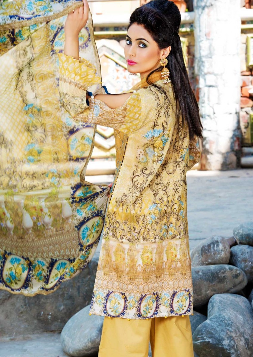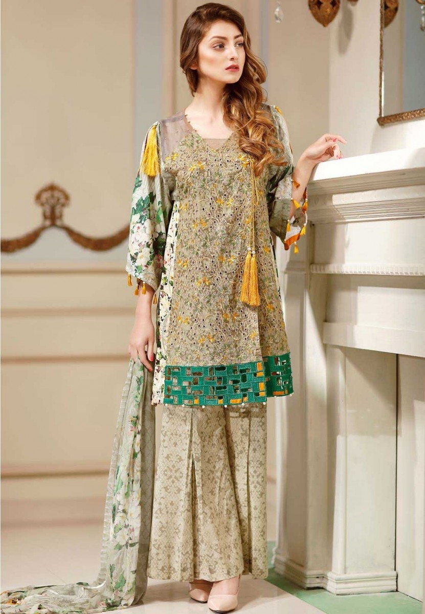 So the Festivity is in the air. All brands and designer labels are busy in launching their brand new festive assortments. Did you go through any of them? If not yet then nothing to worry about. We are here for your guidance and help. Bringing all the festive assortments here in our festival special gallery, we are aiming to help you find the most appropriate stuff to look fabulous and classy on the upcoming occasion. The festival of Eid which is full of tradition, festivity and celebrations of course requires one to wear something traditional and colorful. Various brands have been famous for their outclass color combinations and contrasting patterns. A few of them which stay prominent in the market will shortly be discussed at this platform with all their newest and finest festive assemblages, so you may find it easy to find the outfit of your dream for the grand religious festival of Eid. Caring about your festival shopping, we will try our best to state all the details of products including the dress codes and price tags. Let us start first by the very beautiful, sizzling and superb Warda Eid festival collection presenting an amalgam of cool, soft and bright festive colors.