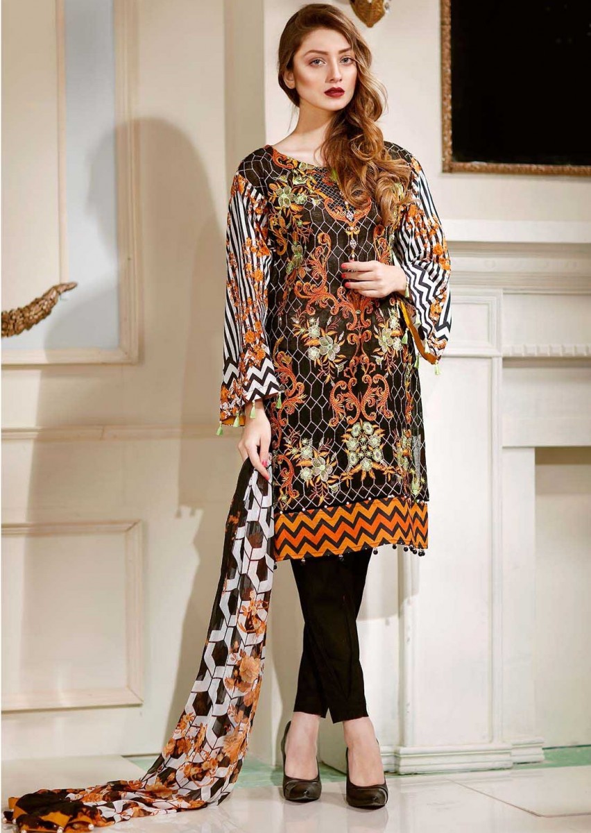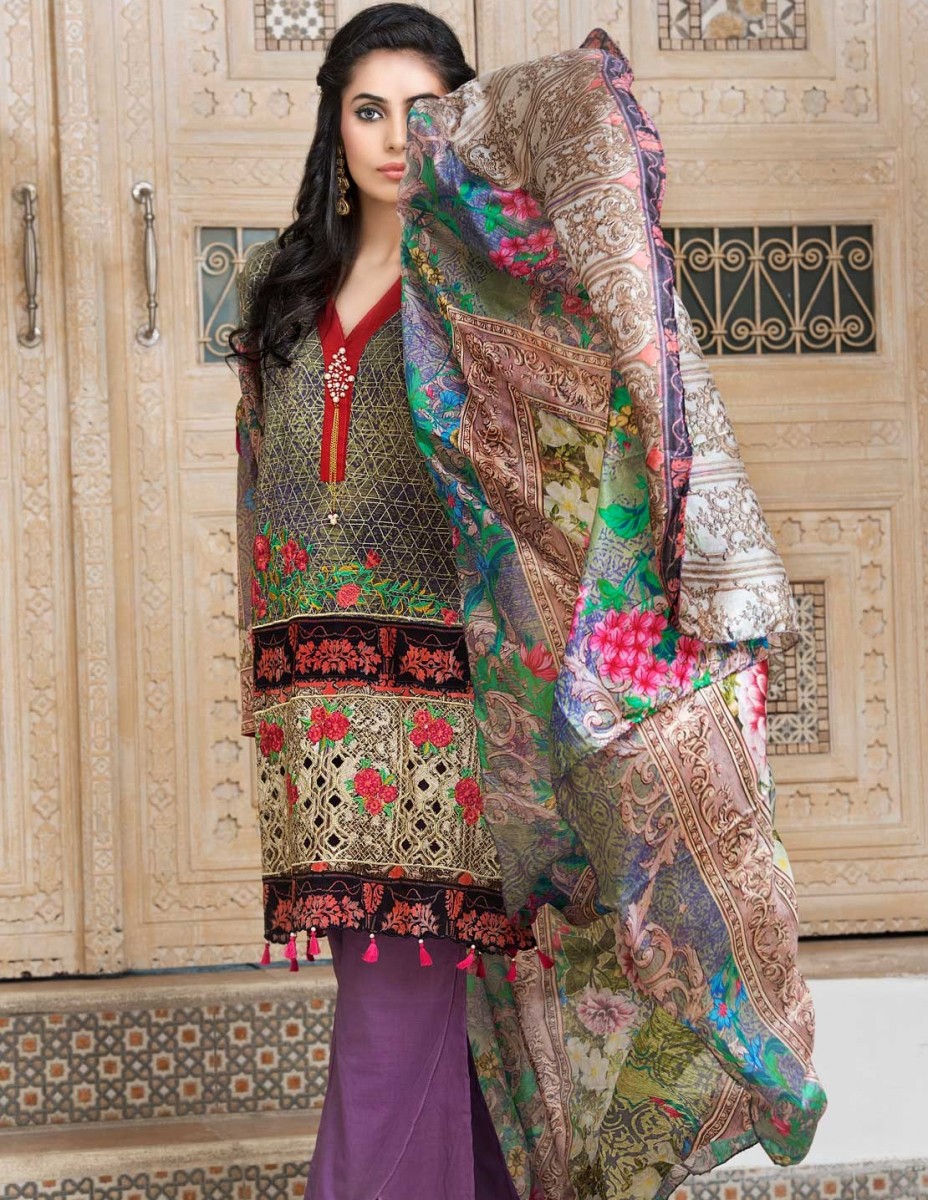This is another contrast of Warda Embroidered classics designed for the occasion of Eid. It has been embellished with delicate embroidery all over the front. If you get it stitched in the same style as displayed below, you can surely wear a true class this festival.