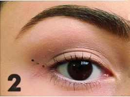 Put the edge of an eyeshadow brush diagonally with the shape of your eye.