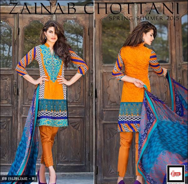 Zainab Chottani Lawn Spring Summer Collection 2015-2016 is available at leading stores after its official release a few days back. It has brought such amazing prints with it that ladies of good fashion taste can find no other collection better and worth having than this outclass array of dresses. Summer lawn suits of this classy assortment have been modernized with new and trendy prints along with beautiful embroideries in eye catching colors. Floral patterns in contrasting colors can attract you with their beauty and elegance.