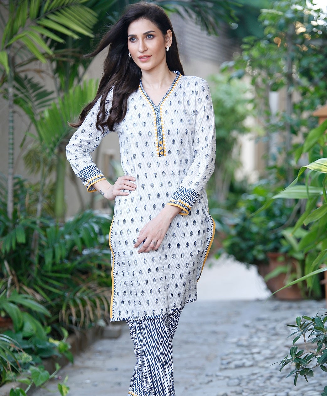 This pretty Zeen Vintage Blue in Navy shade with a pure white base and casual print all over the fabric is another stunning article of the series.