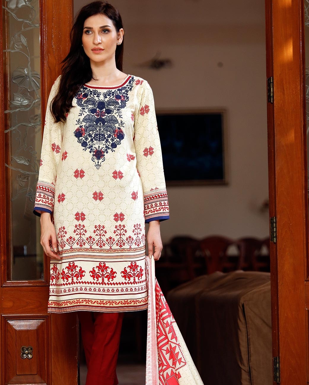 Start this season’s shopping with this fabulous Cotton Khaddar suit by Cambridge Zeen. The unstitched three piece full suit costs 3195 Rs only.